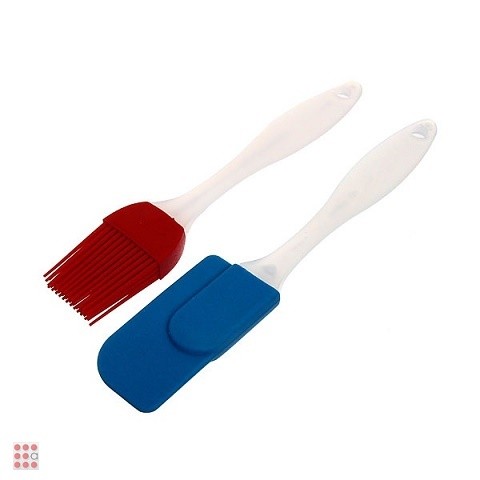 Силиконовая кисточка очень хороша при смазывании выпечки глазурью, яйцом или кремом. Также с помощью кисти можно смазывать формы для выпечки, сковородки для блинов. Кисть не оставляет ворсинок, равномерно обрабатывает поверхность, не впитывает запахи и не склеивается. После использования кисть достаточно помыть с любым моющим средством для посуды. Лопатка, как и кисть, изготовлена из пищевого силикона. Не царапает поверхности посуды, не пригорает и не деформируется. Способна выдержать температуру до 260 градусов.