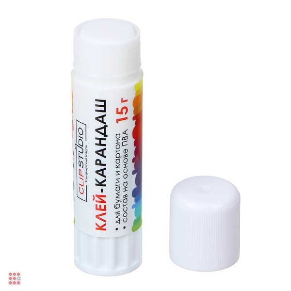 Клей-карандаш - экономичен и очень удобен в использовании, склеивает изделия из бумаги, картона, ткани, фотографии. Изготовлен на основе ПВА, быстро сохнет. Не токсичен, не содержит растворителей. Надежный колпачок предохраняет клей от высыхания.