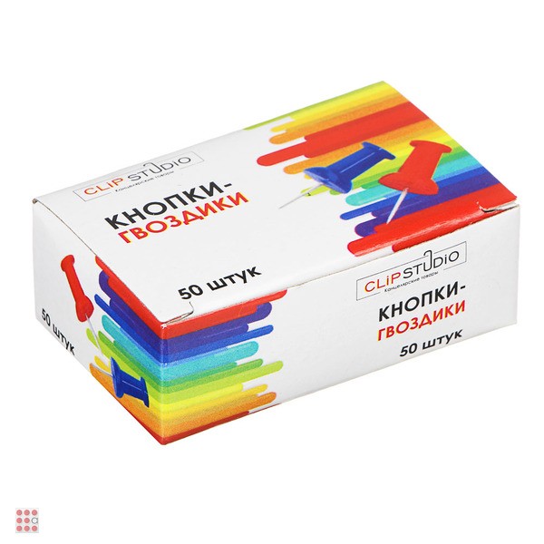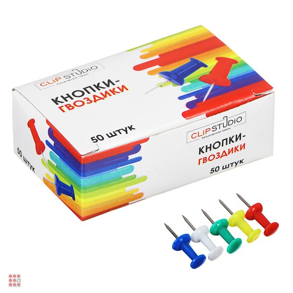 Кнопки-гвоздики канцелярские ClipStudio, 50 штук, цветные