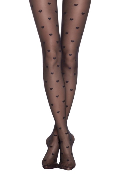Тонкие фантазийные колготки с рисунком «сердечки» BONHEUR – идеальное дополнение к романтичному образу современной девушки.