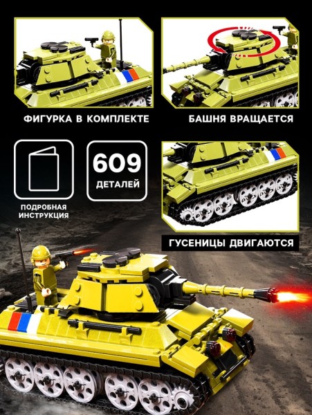 Конструктор «Танк Великой Победы», подвижные элементы, 609 деталей