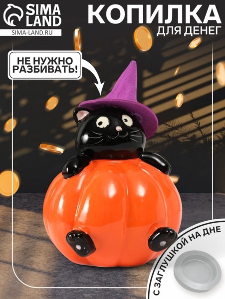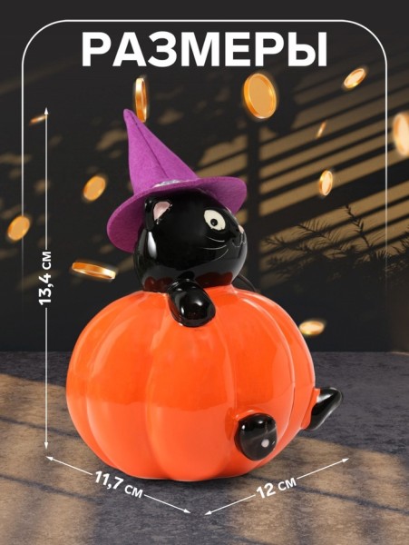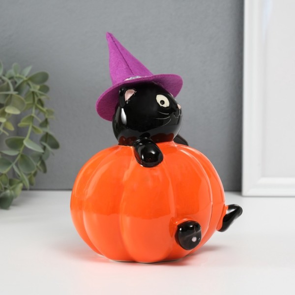 Копилка для денег «Котик в тыкве», керамика, 11.7×12×13.4 см