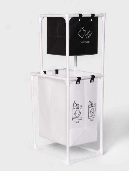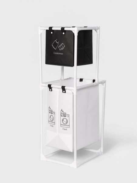 Корзина для белья складная Доляна, 28×39×95 см, чёрная, белая