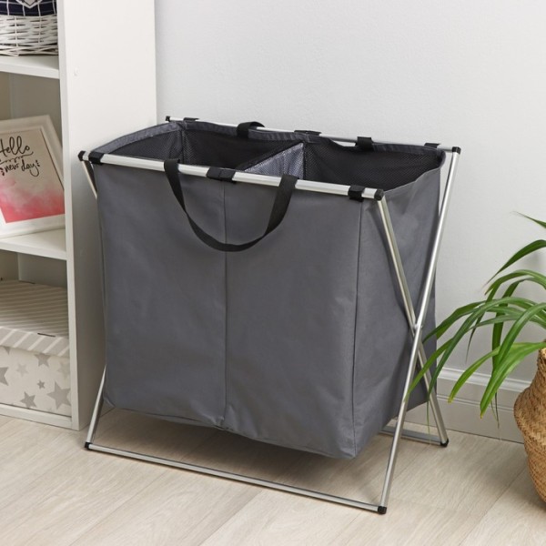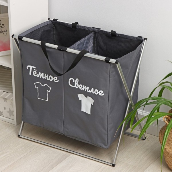 Корзина для белья складная Доляна Color, двойная, 61×36×57 см, серая