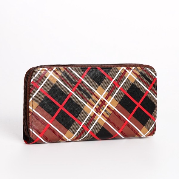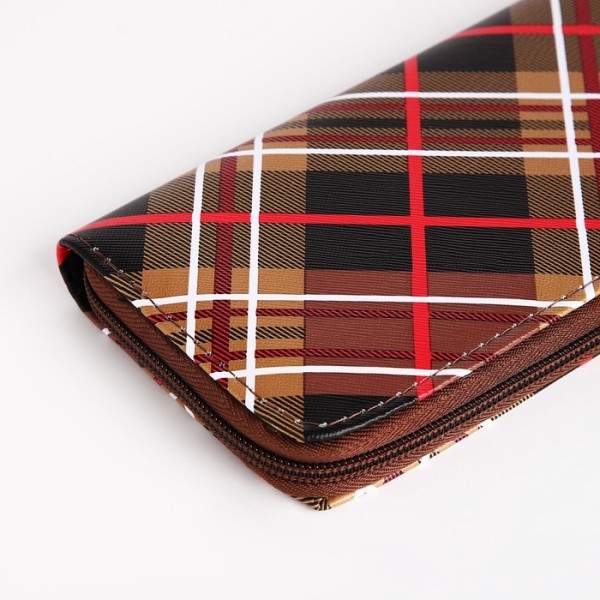 Кошелёк женский на молнии с ремешком, 19.5×2.5×10 см, в клетку, коричневый