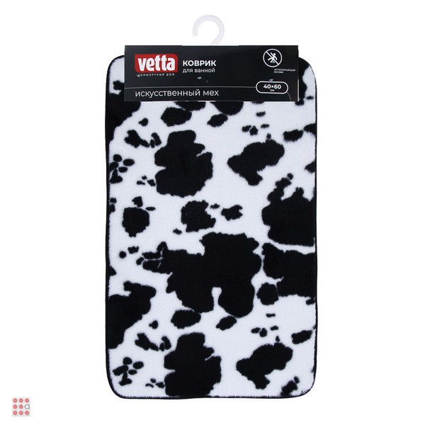 Коврик для ванной, искусственный мех, губка 0,8 см, полиэстер, 40х60 см, энимал, черный/белый