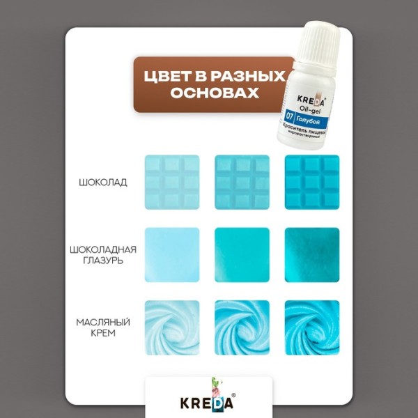Жирорастворимые пищевые красители Kreda Bio Oil-gel обладают широким спектром цветов, имеют высокую красящую способность и экономичны в использовании. Удобный дозатор позволяет чётко отмерять нужное количество капель, а благодаря гелевой основе красителя окрашиваемый материал не меняет консистенцию. Идеально подходят для десертов, мороженного, фруктового льда, кремов и соусов