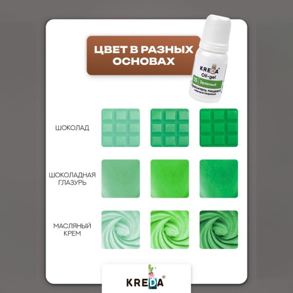 Краситель пищевой Kreda Bio Oil-gel, жирорастворимый, зелёный, 10 мл