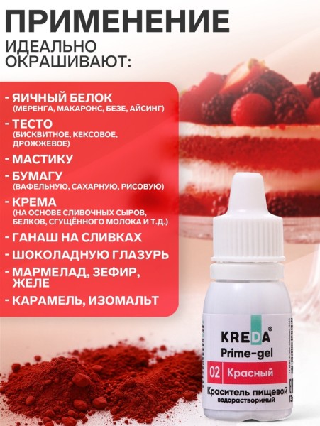 Краситель пищевой Prime-gel, водорастворимый, красный, 10 мл