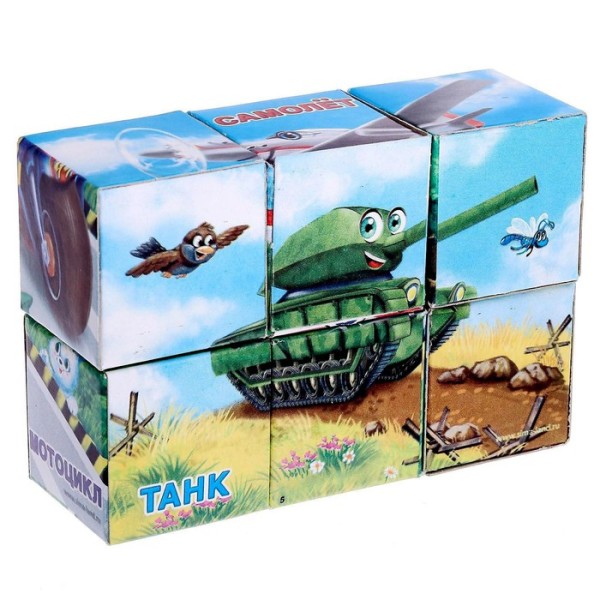 На каждой грани кубиков вы найдёте часть яркой иллюстрации с одним из видов транспорта. Из кубиков можно сложить шесть картинок. Здесь есть и стремительный самолёт, и быстрая машина, и скоростной мотоцикл!