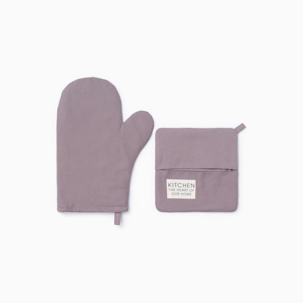 Кухонный набор Этель Kitchen, цвет сиреневый, варежка-прихватка 18х29 см, прихватка 19х19 см