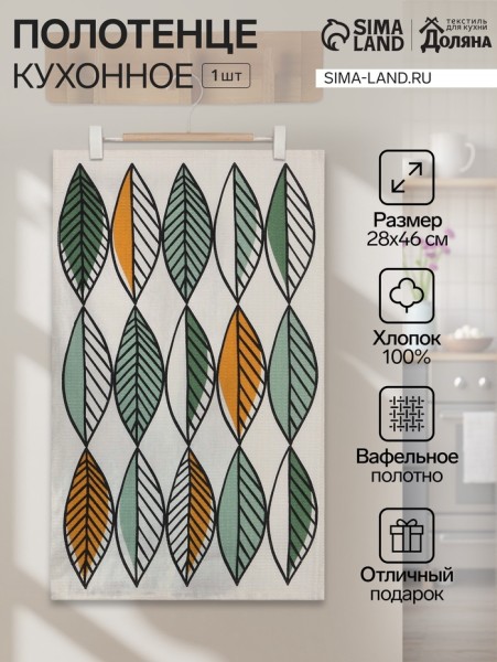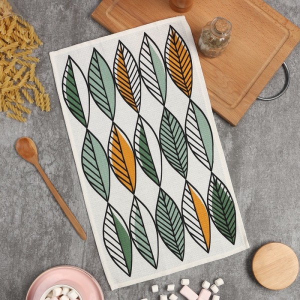 Кухонное полотенце «Доляна. Листья», 28×46 см, 100% хлопок, вафля 160 г/м²