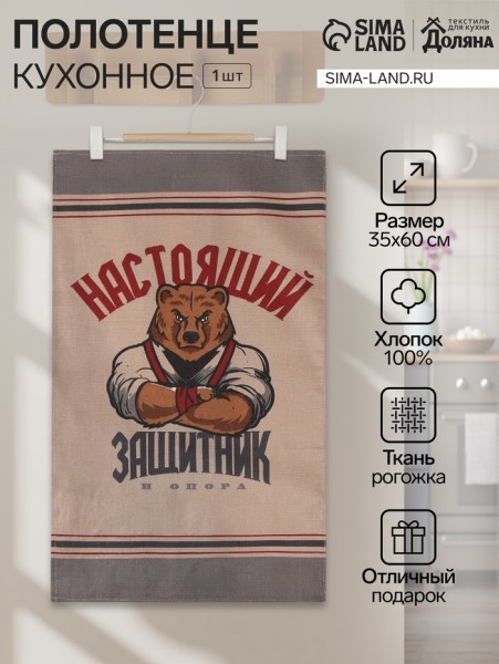 Кухонное полотенце «Доляна. Настоящий защитник», 35×60 см, 100% хлопок, рогожка 160 г/м²