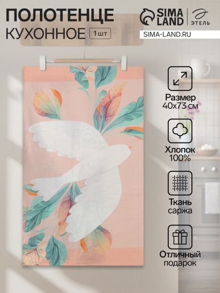 Кухонное полотенце «Этель. Птица счастья», 40×73 см, 100% хлопок, саржа 190 г/м²