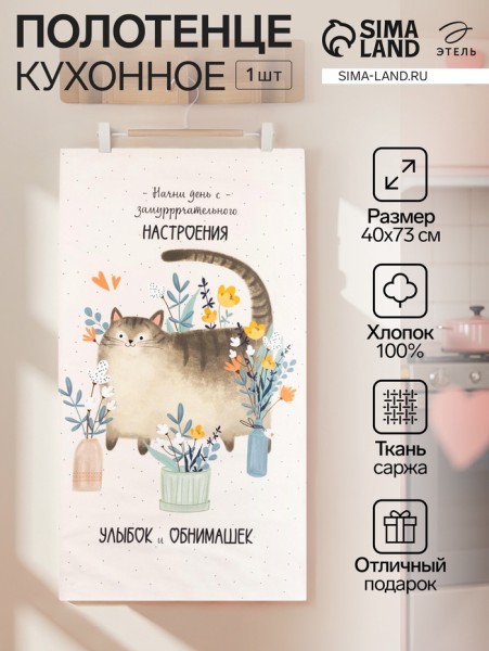 Кухонное полотенце «Этель. Замуррчательное настроение», 40×73 см, 100% хлопок, саржа 190 г/м²