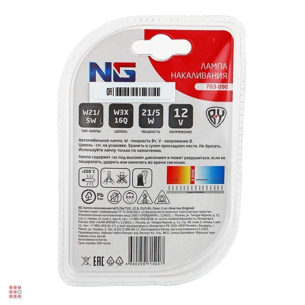 Материал кварцевое стеклоНапряжение 12 ВТип базы W3x16QТемпература цвета 3600КМощность 4ВтТип лампы/цоколя W21/5WЯркость +30%