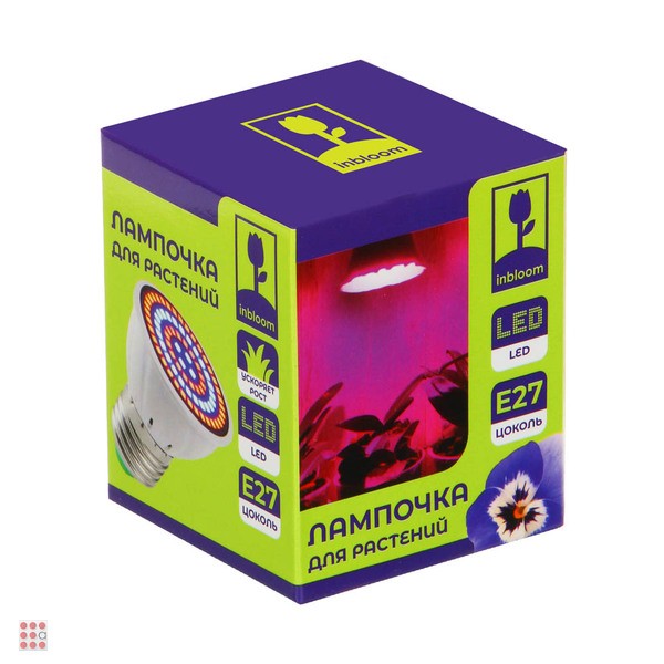 Лампочка LED для растений INBLOOM мощностью 3,6 W на цоколь E27 – это диодная лампа, которая подходит для выращивания рассады, комнатных цветов, а также некоторых видов экзотических растений. Ее можно установить в любой светильник с соответствующим типом цоколя. Безопасна для зрения, экономично расходует электроэнергию. Значительно увеличивает темпы роста растений, делает листья более крепкими, здоровыми и яркими. Содержит 80 светодиодов (52R+28B).