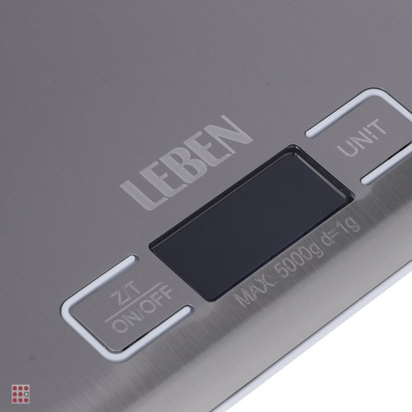 Кухонные весы LEBEN — это надёжное и стильное устройство для взвешивания продуктов до 5 кг. Они изготовлены из металла и имеют прямоугольную форму. Для работы требуются две батарейки типа ААА (не входят в комплект). Эти весы станут незаменимым помощником на кухне и помогут точно следовать рецепта