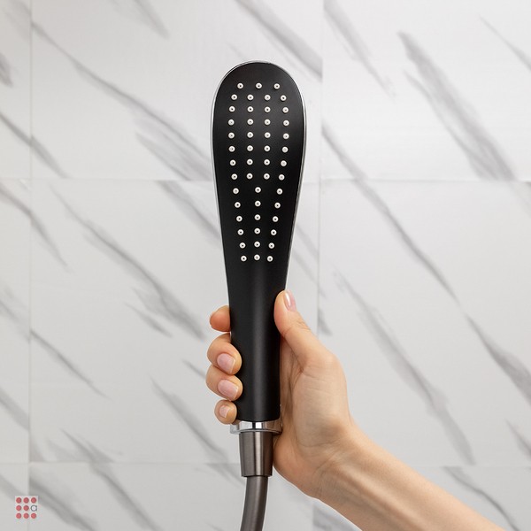 Лейка для душа с 1 режимом работы, размер 63х250 мм прекрасно подходит для повседневного использования. Оригинальная продолговатая форма добавляет эстетики в интерьер ванной комнаты. Лейка обеспечивает комфортный напор воды, выдерживает высокие температуры и обладает высокой прочностью. Качественное покрытие черный плюс хром не подвержено царапинам и сколам. Форсунки не забиваются и легко очищаются. Монтаж не требует использования специальных инструментов.