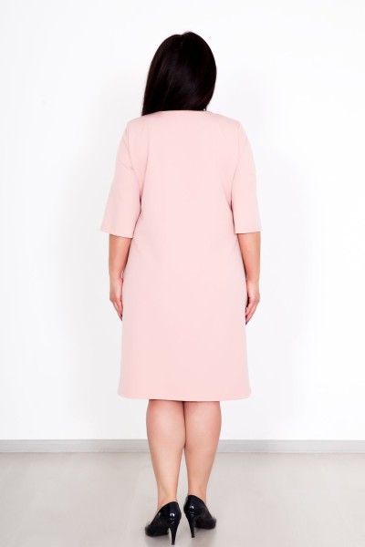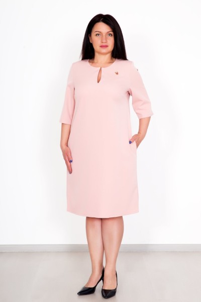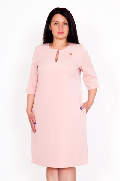 Элегантное платье из крепа, прямого кроя с карманами. На полочке грудные вытачки. Рукав укорочен 7/8. Красиво оформлен вырез декольте. На груди украшает брошь. Сдержанное, лаконичное платье прекрасно как для вечернего выхода, так и для рабочих будней.