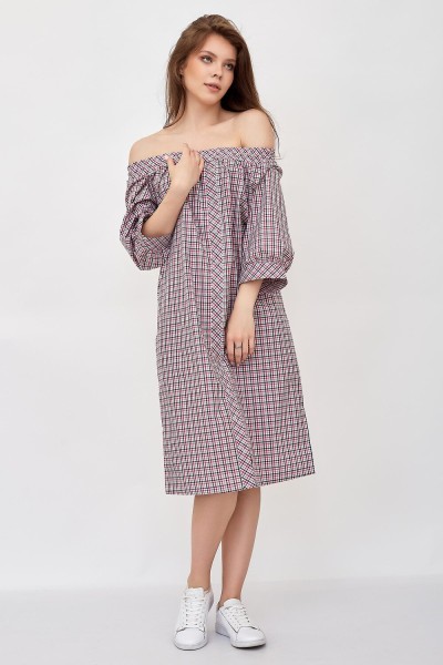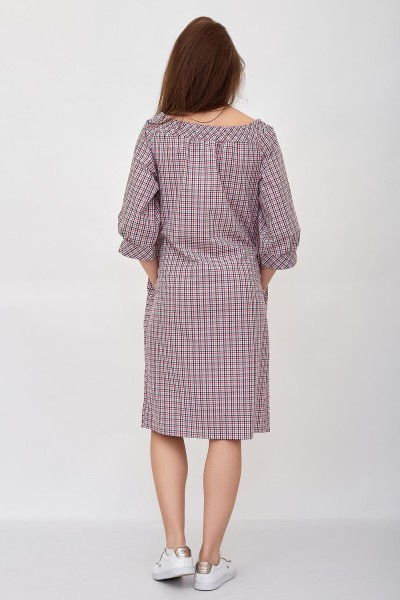 Изумительное летнее платье в клетку с горловым вырезом Анжелика. Модель прямого силуэта с карманами. Полочка украшена пуговицами по декоративной планке. Длинный рукав фонарик с манжеткой. В таком платье вы будете выглядеть модно и стильно.