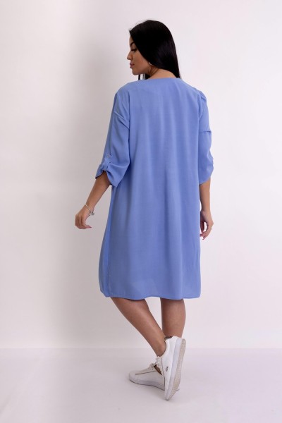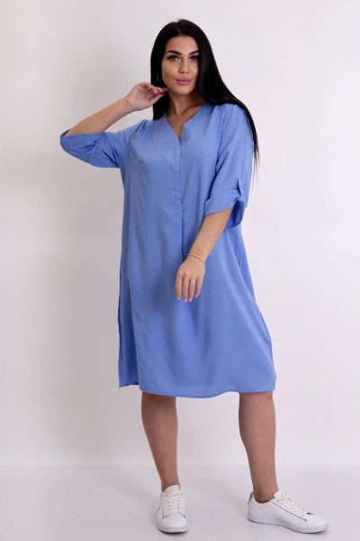 Легкое платье туника Луиза выполнена из 100% вискозы. Благодаря такому составу можно с комфортом носить тунику в жаркую погоду и на пляж. Модный фасон и удобная застежка на кнопки максимально комфортна в носке. Талию подчеркнет тоненький поясок, выточки на груди придадут стройность вашему силуэту и дополнят образ рукава с регулировкой длины на кнопочке. Удобная и элегантная модель, как для дом,а так и для отпуска, прогулок у моря.