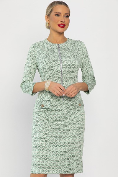 Платье в деловом стиле в бежево-салатовом цвете — это воплощение элегантности, которое подходит как для офиса, так и для особых случаев. Его полуприлегающий силуэт изящно подчеркивает фигуру, создавая утонченный образ. Универсальный дизайн позволяет легко комбинировать это платье с различными аксессуарами и обувью, что делает его незаменимым элементом вашего гардероба.