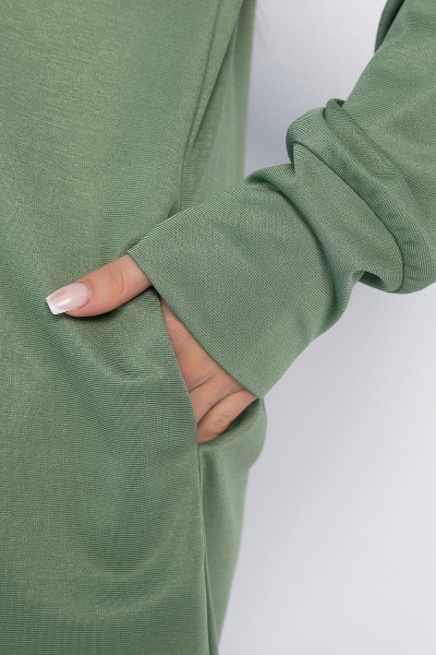 Трикотажное платье свободного кроя — это отличный выбор для создания стильного и комфортного образа! Его отличительной чертой является эффектная металлическая бахрома, которая придаёт ему оригинальности. Модель оснащена удобными боковыми карманами. Элегантные рукава с высокой манжетой не только добавляют образу изысканности, но и защищают от холода.