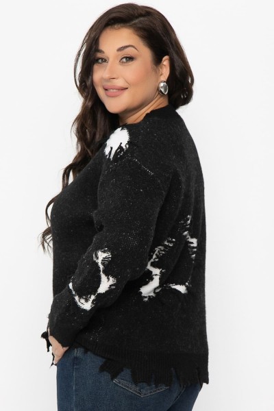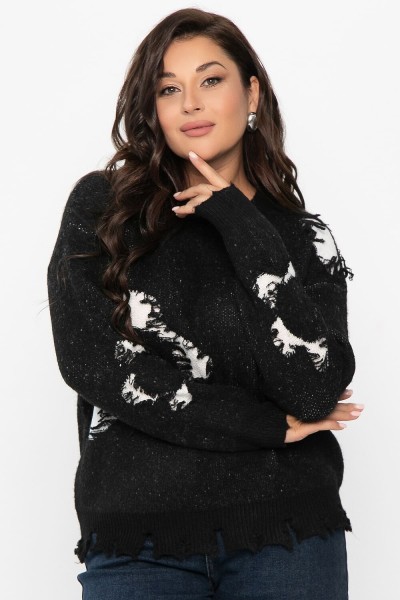 Женский рваный свитер — это яркий элемент, который станет изюминкой повседневного гардероба. Мягкий и приятный на ощупь материал обеспечивает комфорт на протяжении всего дня. Свободный крой не стесняет движений и дарит ощущение легкости и уверенности. Оригинальный рваный дизайн с изображением белого цветка придаёт изделию уникальность. Это идеальный выбор для создания стильных и комфортных образов!