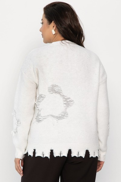 Женский рваный свитер — это яркий элемент, который станет изюминкой повседневного гардероба. Мягкий и приятный на ощупь материал обеспечивает комфорт на протяжении всего дня. Свободный крой не стесняет движений и дарит ощущение легкости и уверенности. Оригинальный рваный дизайн с изображением серого цветка придаёт изделию уникальность. Это идеальный выбор для создания стильных и комфортных образов!