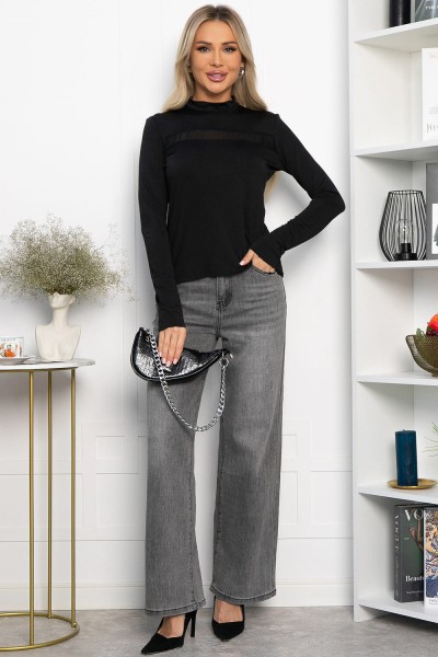 Изысканная женская водолазка станет идеальным дополнением к вашему образу, придавая ему утончённость и элегантность. Особенность этой модели — сетчатая вставка, которая придаёт образу особый шарм. Необработанные края по низу изделия и у рукавов создают современный и актуальный образ, делая эту вещь незаменимой в вашем гардеробе.