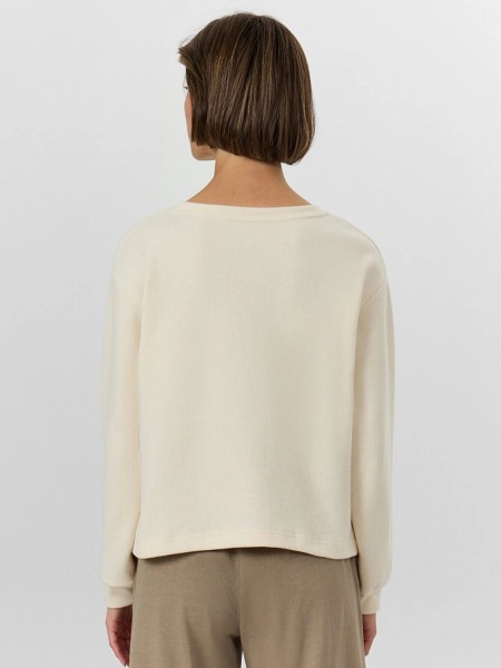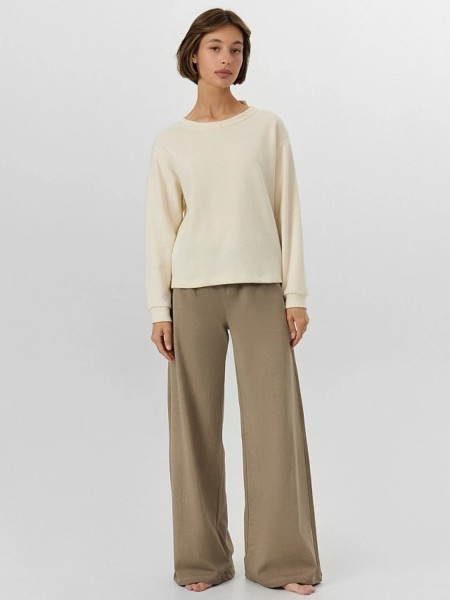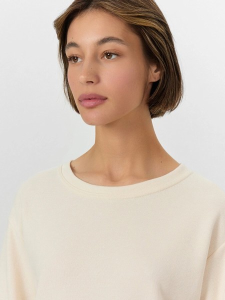 Спущенная линия плеча и длинные рукава с манжетами добавляют образу расслабленности, позволяя чувствовать себя свободно и уютно. Материал устойчив к износу, не теряет форму после стирок и остается таким же мягким даже при длительном использовании.