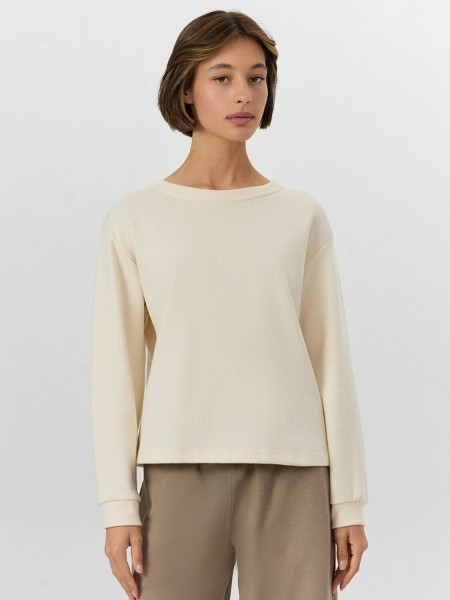 Уютный домашний свитшот для женщин – идеальная модель для комфортного отдыха в теплой атмосфере. Модель с прямым силуэтом и округлым вырезом горловины создана из мягкого материала, который дарит приятные тактильные ощущения и прекрасно сохраняет тепло в прохладные дни.