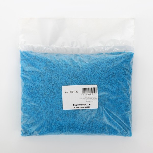 Медный купорос – антисептическое и фунгицидное средство контактного действия. Ограничивает развитие и распространение грибковых заболеваний плодовых и некоторых ягодных культур. Применяется для обработки древесины с целью борьбы с плесенью и гнилями. Также используется как микроудобрение, источник меди.