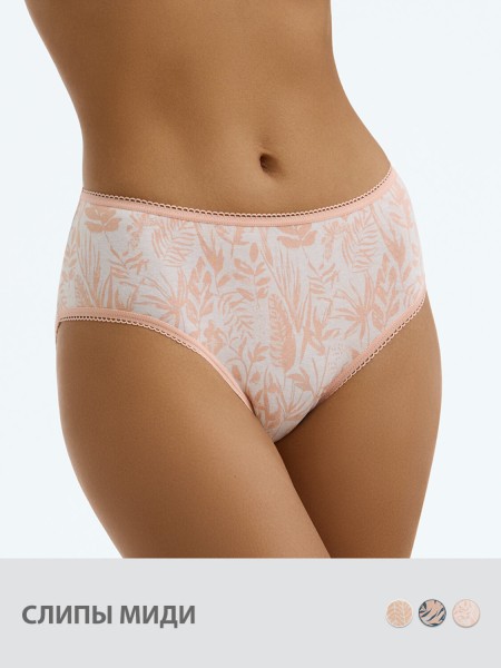 Трусы - слипы со средней линией талии с широкой боковиной. Практически полностью закрывают ягодицы. Изготовлены из высокогигиеничного хлопка, который не подвержен деформации и пилингу, отлично пропускает воздух, впитывает влагу и подходит даже для самой чувствительной кожи. Края, обработанные мягкими эластиками с кружевными фестонами, создают дополнительный комфорт.