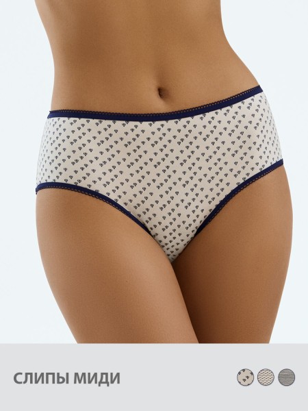 Трусы - слипы со средней линией талии с широкой боковиной. Практически полностью закрывают ягодицы. Изготовлены из высокогигиеничного хлопка, который не подвержен деформации и пилингу, отлично пропускает воздух, впитывает влагу и подходит даже для самой чувствительной кожи. Края обработаны мягкими эластиками с кружевными фестонами.