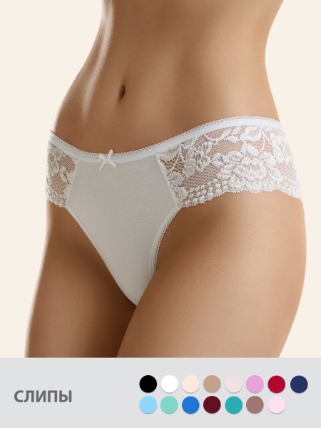 Трусы-слипы выполнены из высокогигиеничного хлопка в сочетании с мягким, эластичным кружевом с цветочным орнаментом, которое деликатно подчеркивает женственность. Максимальный комфорт при носке. Используемый хлопок не подвержен деформации и пилингу. Края изделий обработаны мягкими эластиками с кружевными фестонами.