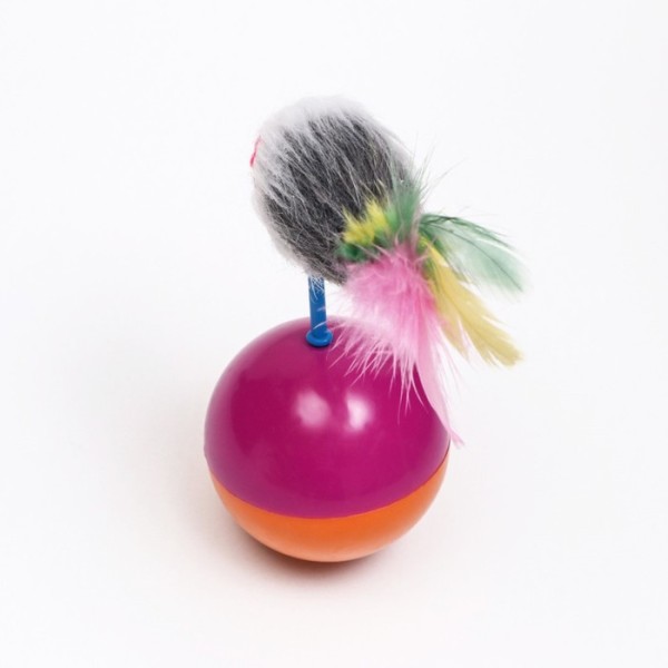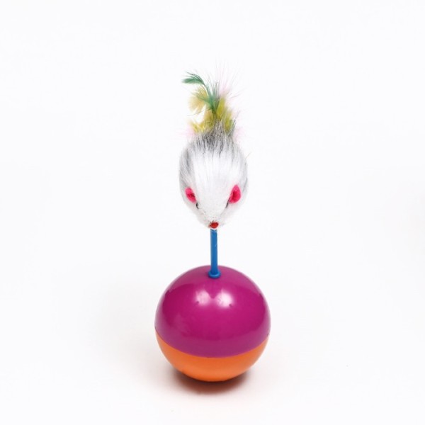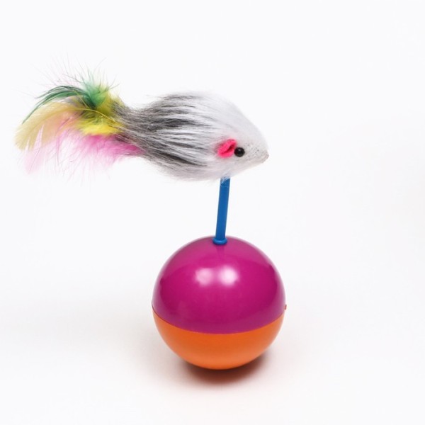 Мышь-неваляшка из искусственного меха на шаре, 11×6 см фиолетовый/оранжевый