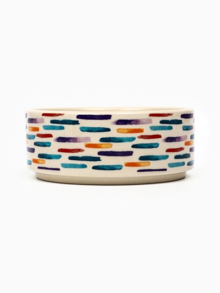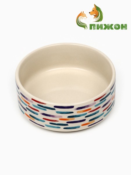 * Современный дизайн: Рисунок «Акриловые полоски» добавляет миске выразительности. Разноцветные вставки на белом фоне создают ощущение динамики и подходят под разные интерьеры.