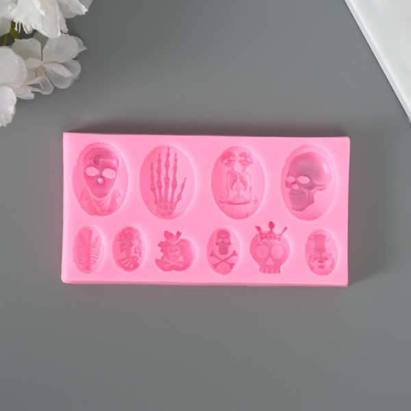 Молд силиконовый «Скелеты и черепа», 10 предметов, 7.2×13.6 см