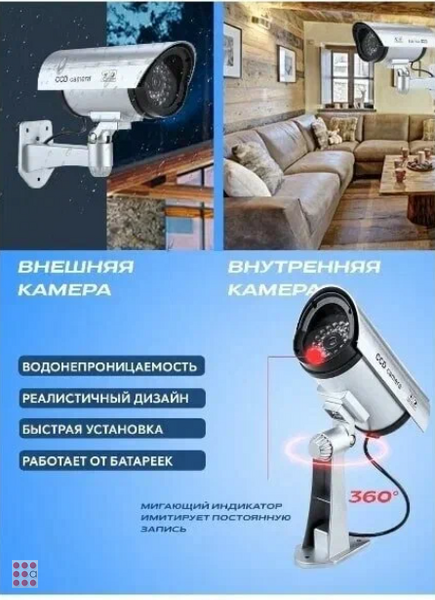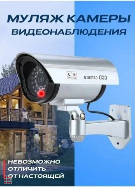 Муляж видеокамеры Dummy IR Camera. Камера видеонаблюдения устанавливается для имитации работы систем видеонаблюдения, а также совместно с реальным видеонаблюдением, в том числе, в системе "умный дом". Это эффективная и недорогая защита Вашего имущества. Приоритетной задачей данного оборудования является психологическое воздействие на возможного нарушителя, отпугиватель воров. Такое решение идеально подойдет для Вашего бизнеса и дома. Данная модель оснащается красным мигающим светодиодом для имитации рабочего режима (мигает в интервале через каждые 2 секунды). Благодаря использованию пластика высокого качества данная модель имеет высокие эксплуатационные качества. Может использоваться как на улице, так и в помещениях. Имеется козырек, предотвращающий попадание осадков в отсек батареек. Применяется по назначению: видеонаблюдение в лифт, видеонаблюдение на даче, видеонаблюдение в подъезде, видеонаблюдение в офисе, видеонаблюдение в гараже, антивандальная камера, детский контроль муляж. Преимущества муляжа камеры видеонаблюдения · Легко устанавливается; Настраивается нужный угол обзора;· Не отличается от оригинала; · Не требует технического обслуживания; Технические характеристики:Материал пластик;1 Мигающий красный светодиод;Питание от 2 батареек типа АА - "пальчиковые батарейки" (в комплект не входят), 1 комплекта хватает до 3 месяцев, аккумуляторные батареи хватают до 4 месяцев;Наклейка ведется видеонаблюдение;Проводок с потайным выходом.