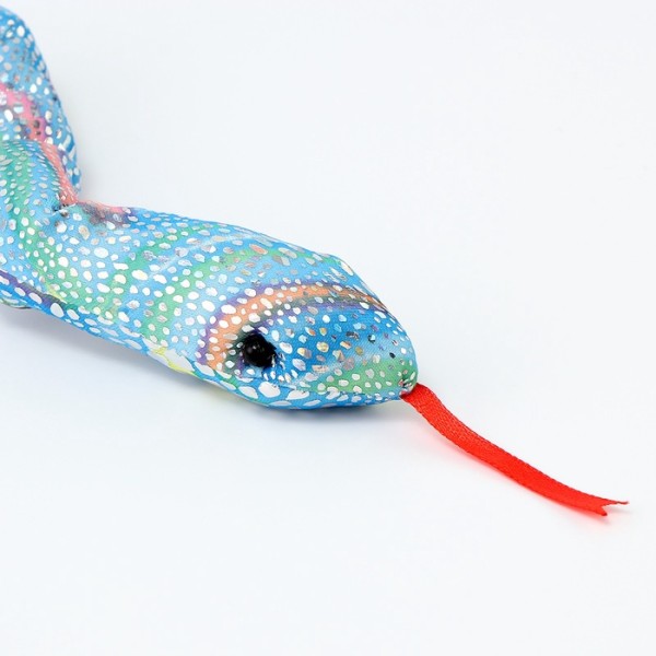 Эта блестящая змея — не просто игрушка, а источник творчества и вдохновения. Она помогает ребёнку создавать свои собственные истории, фантазируя о приключениях или спокойных моментах. Мягкая текстура и удобный размер делают её идеальной для объятий и игр в любых условиях. Игрушка может стать символическим подарком или стильным акцентом в интерьере, особенно для тематических праздников или детской комнаты.