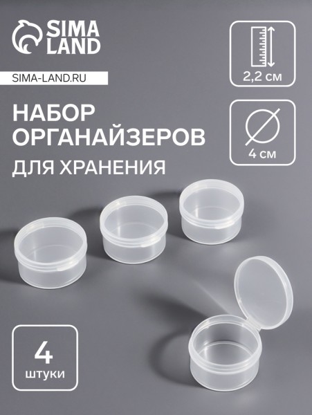 Набор баночек для мелочей, 4 шт., d=4×2.2 см, прозрачный