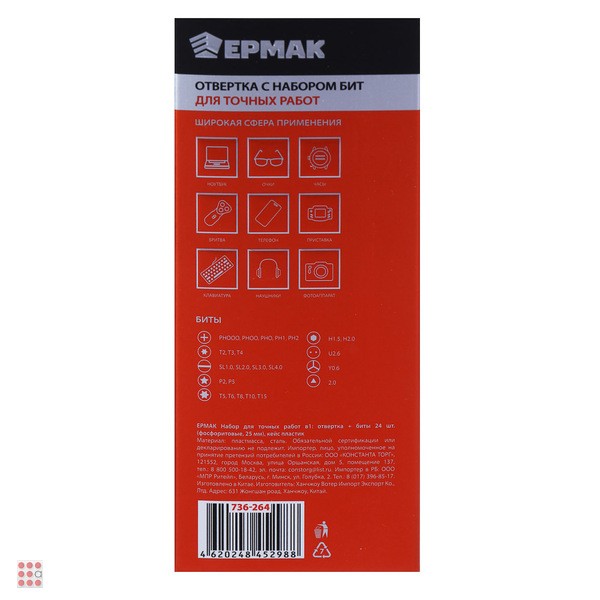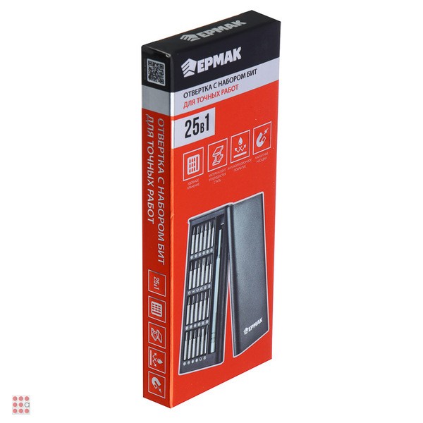 Набор для точных работ 25в1: отвертка + биты 24шт (фосфоритовые,25мм), кейс пластик