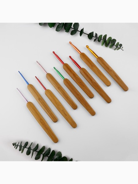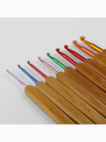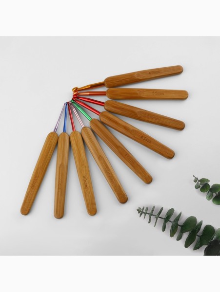 Набор крючков для вязания, с бамбуковыми ручками, d=2-6 мм, 13.5 см, 9 шт
