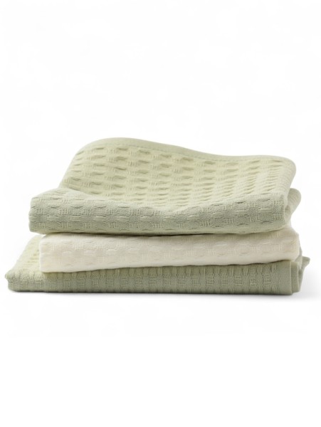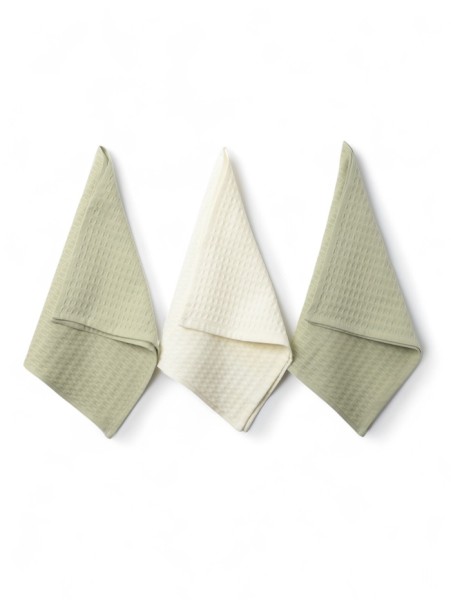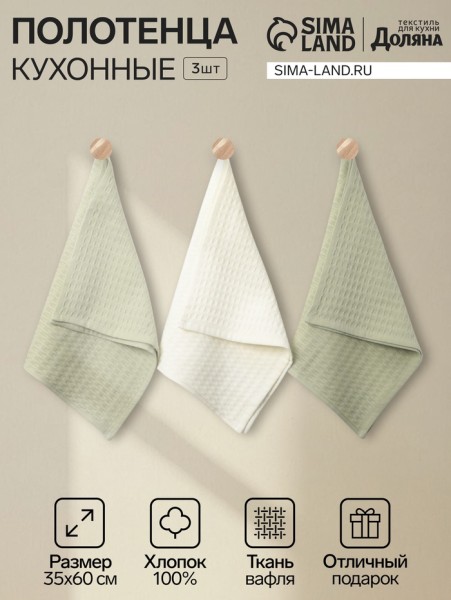 Набор кухонных полотенец «Доляна»: белое, оливковое, 35×60 см - 3 шт., хлопок 100%