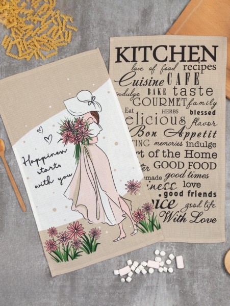 Набор кухонных полотенец Доляна Happiness, 35х60 см -2 шт, 100% хлопок, вафля 160 г/м2