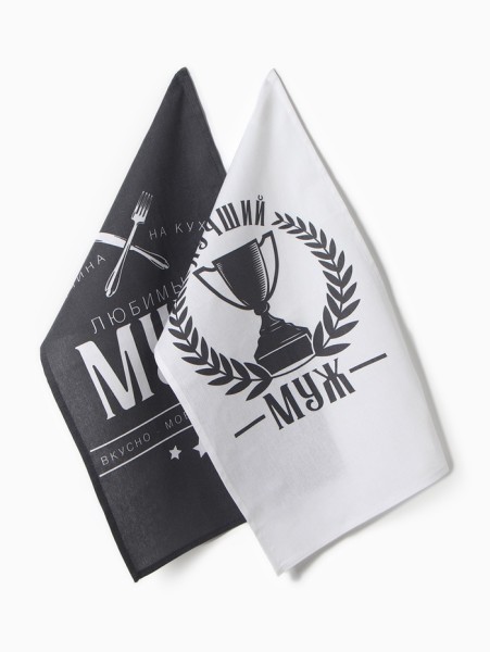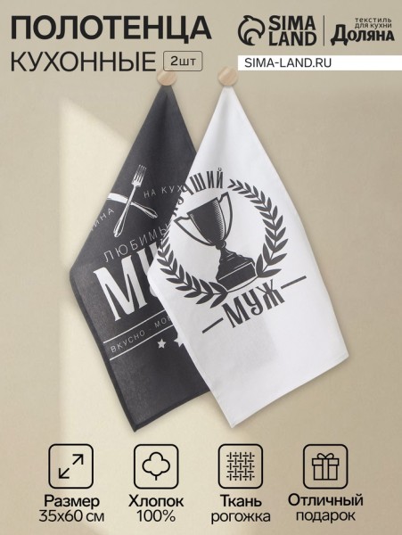 Набор кухонных полотенец «Доляна. Муж», 35×60 см,2 шт., 100% хлопок, 160 г/м²