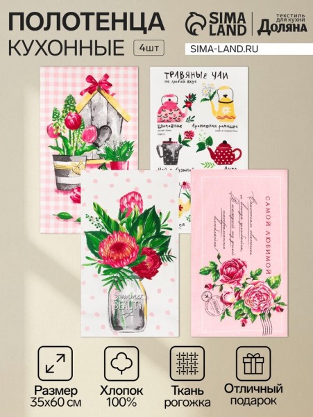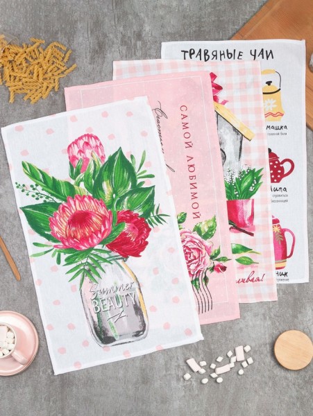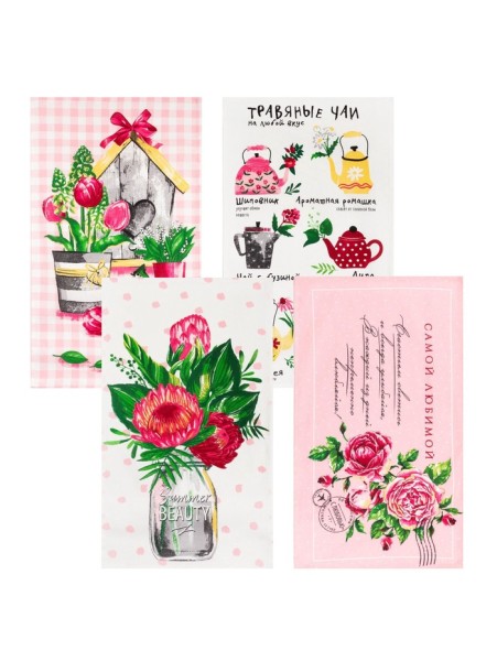 Набор кухонных полотенец «Доляна. Самой любимой», 35×60 см - 4 шт., 100% хлопок