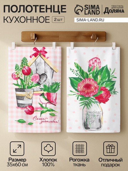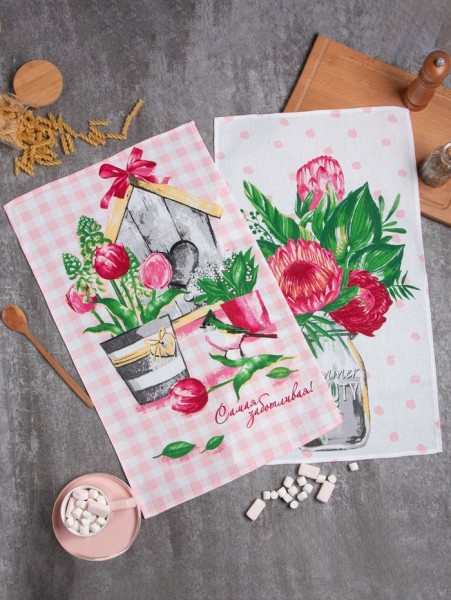 Набор кухонных полотенец Доляна «Самой заботливой», 35х60см-2шт, 100% хл